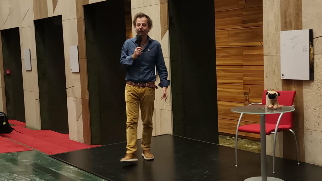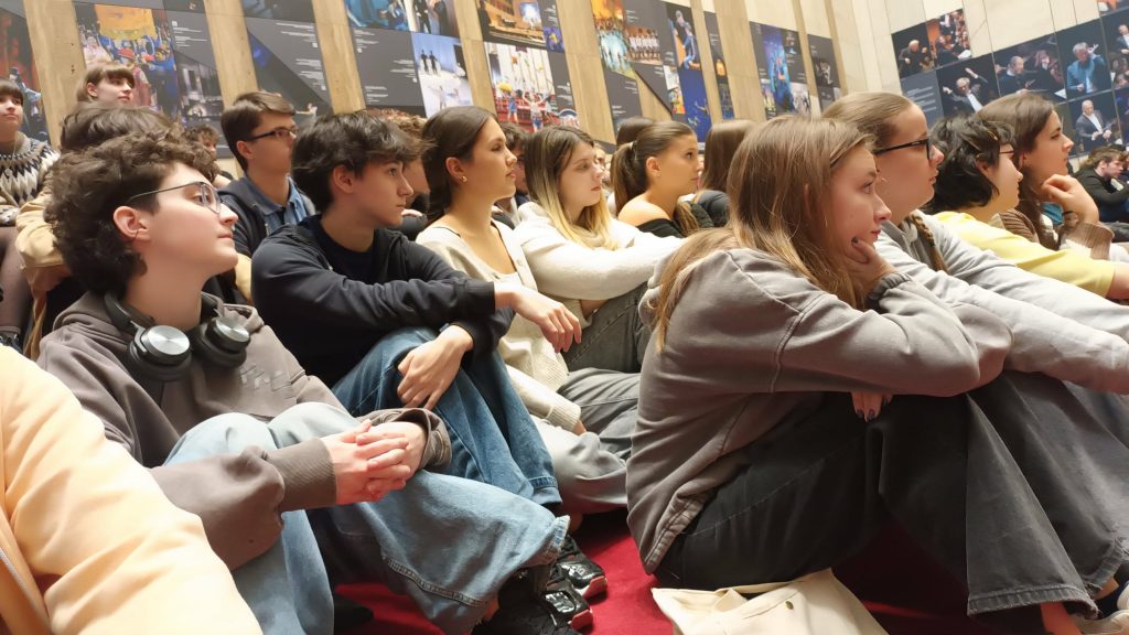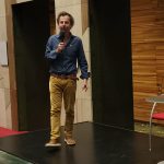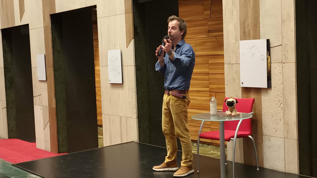 A 10.a-sok 2023-ban még csupán 7. osztályosok voltak, amikor Grecsó Krisztián kortárs író, költő egy író-olvasó találkozó keretében nálunk járt. Most viszont elérkezett az idő – túl a Verán 🙂 –, hogy ők is találkozzanak vele, s megismerjék azt a különleges viszonyt, ami a szerzőt az irodalomhoz és az alkotáshoz fűzi: az elsöprő lendületet, humort és öniróniát. A diákok egy izgalmas rendhagyó irodalomórán vettek részt a MÜPÁ-ban Gyanó Éva osztályfőnök és Fülöp Katalin osztályfőnök-helyettes, ki az osztály magyartanára is, kíséretében. Grecsó Krisztián nagyon ért a kamaszok nyelvén! Pontosan tudja, hogyan szólítsa meg őket, vonja be a beszélgetésbe és ígérjen kisötöst a hallgatóságnak. Személyes élményein keresztül láttatja az irodalmat, hozza közelebb az alkotásokat, s bebizonyítja, hogy nemcsak halott költők, írók „léteznek”, hanem vannak a kezdeti kamaszos elszántság után kemény munkával és szorgalommal megáldott alkotó emberek is. Olyanok, akiket öröm olvasni, akiknek a történetei köztünk élnek, ott vannak a mindennapjainkban, amelyek segítségével megismerhetjük érzéseinket, megtalálhatjuk magunkat a szövegben.