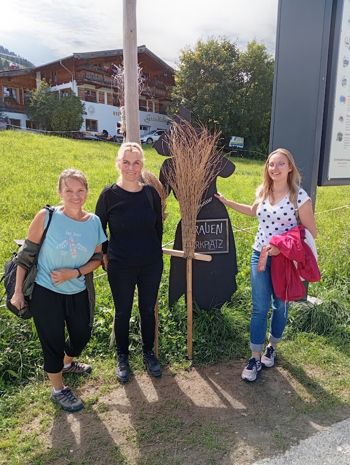 Am ersten Tag besuchten wir in Söll das Hexenwasser, das auf dem Salveberg liegt. Wir fuhren mit der Seilbahn auf 1829 Meter hoch , aber zurück gingen wir zu Fuß. Das war ein spannender, etwa 5 km langer Spaziergang. Auf dem Gipfel hatten wir eine atemberaubende Aussicht auf die kleinen Dörfer unter uns ,und auf den fern liegenden Dachsteingletscher. Unterwegs nach unten begegneten wir vielen Kühen.