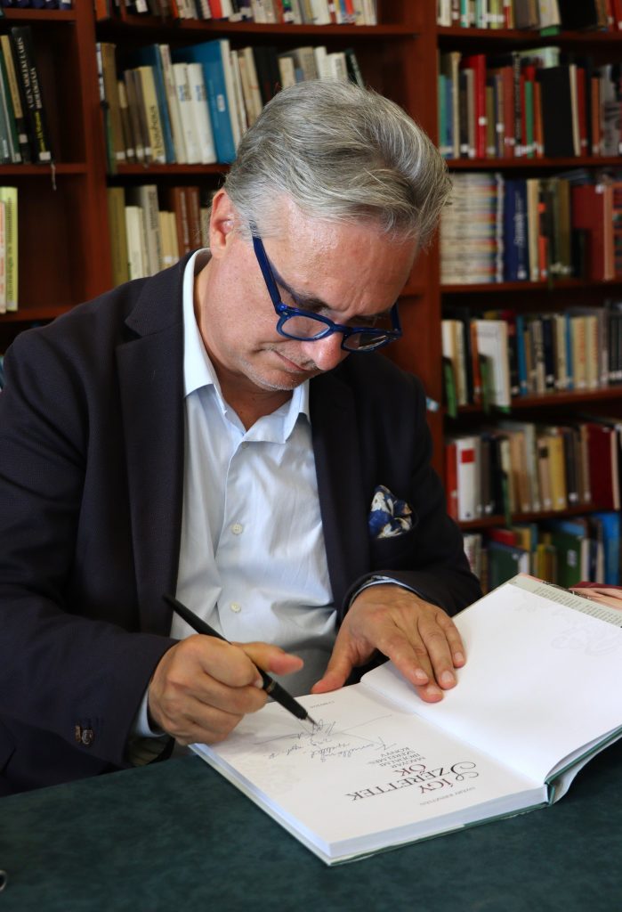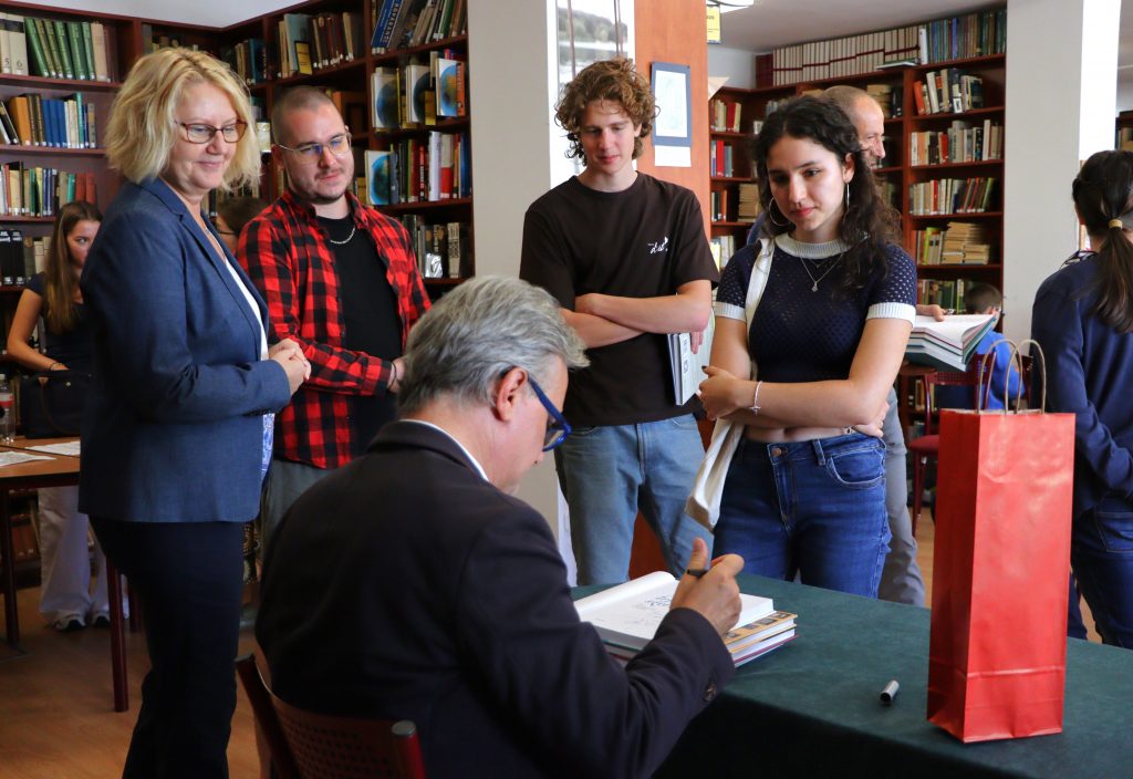 Egy tanév nem is indulhatna izgalmasabban, mint a kortárs irodalommal való találkozással. Szeptember közepén Nyáry Krisztián magyar kommunikációs szakember, könyvkiadó, író, irodalomtörténész volt gimnáziumunk vendége, akivel Pesztericz Dóri és Zámbó Zita beszélgetett. Először az olvasási szokásokról esett szó. Elhangzott, hogy hazánk a középmezőnyben van e téren; a felnőtt lakosság egy része éves szinten 30-50 könyvet is elolvas, ami azért nem rossz. Persze egy könyvkiadónak az egyik legfontosabb célja: növelni az olvasóközönség számát. Hogy lehetséges ez? Vannak sikerkönyvek, e tekintetben a könyvkiadás két modellje érvényesül. Az egyik a bestseller lista, mely nemzetközi trendek alapján születik, a másik az ún. back list, mely főleg szépirodalmi könyvek csoportja, s ezek szerzői az évek alatt klasszicizálódnak. Az olvasás iránti vágy felkeltésének hatékony módja a TikTok és a BookTok, hiszen ezeken a fórumokon a fiatalok ajánlanak könyveket egymásnak. De akár „…érdemes bemenni egy könyvesboltba”, ahol véletlenül megtetszett egy könyvborító. A kötelező olvasmányokról vendégünk azt mondta, hogy egy nemzet kultúrájához hozzátartozik bizonyos kulturális, művészeti örökség. Bár az is igaz, hogy egy regény kb. 70 évig szólítja meg az olvasót, utána már sokkal nehezebb kapcsolatot találni a befogadóval. Örömforrás kell, maradjon az olvasás, amihez nagyban hozzátartozik a kortárs irodalom. Szerencsére a magyartanárok alapvetően tudják, mit adjanak a tanítványaik kezébe, de a kronologikus irodalomtanítás problémát jelent. Jókai természetesen nehéz olvasmány a hosszú leírások miatt. Ahogy Nyáry Krisztián fogalmazott: „ő saját korának Netflixe és National Geographic-ja is volt egyben.” Hogy most mit kezdhetünk vele? Érdemes inkább a rövid prózáit, novelláit elővenni, melyek ma is élvezetet nyújthatnak.